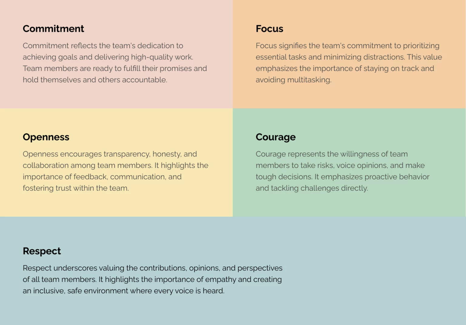 Importantly, discussing the Scrum Values is a helpful way to build a solid and cohesive team culture.
